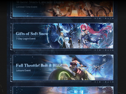 Gifts of Soft Snow is a login event available immediately after the Version 3.1 maintenance ends. Logging in over 7 days, players can claim the following rewards. On Day 1 and Day 2, Rovers receive 1 Lustrous Tide each. Day 3 grants 2 Radiant Tides. Days 4 to 6 each reward 1 Lustrous Tide. Day 7 provides 3 Radiant Tides. In total, this event grants 5 Radiant Tides and 5 Lustrous Tides just for logging in.