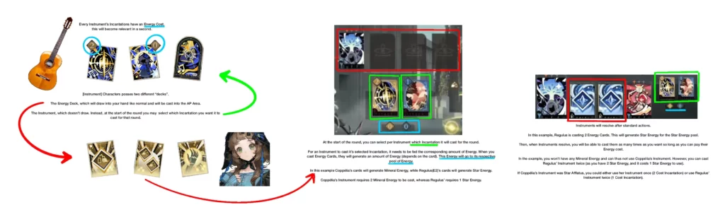 I think first in order is an explanation of the Instrument Archetype, which will be spearheaded by Coppélia. I have tried to summarize the mechanics of this archetype in the following graphic, but I will also explain it in text. Here is how I understand it: